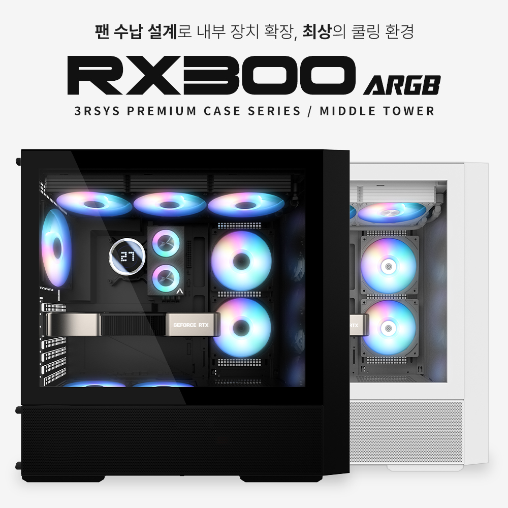 PC케이스(ATX) / 미들타워 / 파워미포함 / 표준-ATX / M-ATX / 표준-ITX / 쿨링팬: 총4개 / LED팬: 4개 / 전면 패널 타입: 강화유리 / 측면: 강화유리 / 후면: 120mm LED x1 / 내부 측면: 120mm LED x3 / 너비(W): 210mm / 깊이(D): 432mm / 높이(H): 465mm / 파워 장착 길이: 210mm / 파워 위치: 하단후면 / VGA 장착 길이: 410mm / CPU쿨러 장착높이: 165mm / LED 색상: ARGB62,500원62,500원