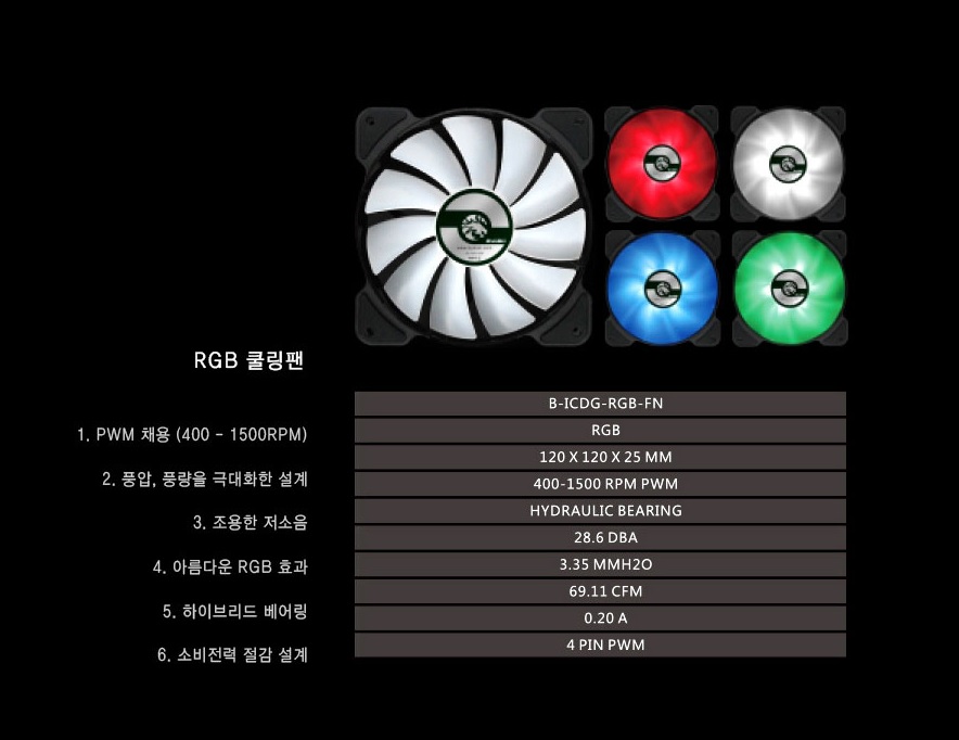 팬 자체에 RGB 스위치가 탑재되어 있어, 버튼을 누르면 색상이 변하는 제품입니다.