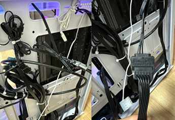 왼쪽은 팬끼리 케이블 연결한 사진이고, 우측은 메인팬과 파워 사타케이블 연결한 사진입니다.
