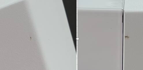 오염된지 알고 닦아 봤는데, 안 닦이는 것 보니까 도장이 까진 것 같습니다.