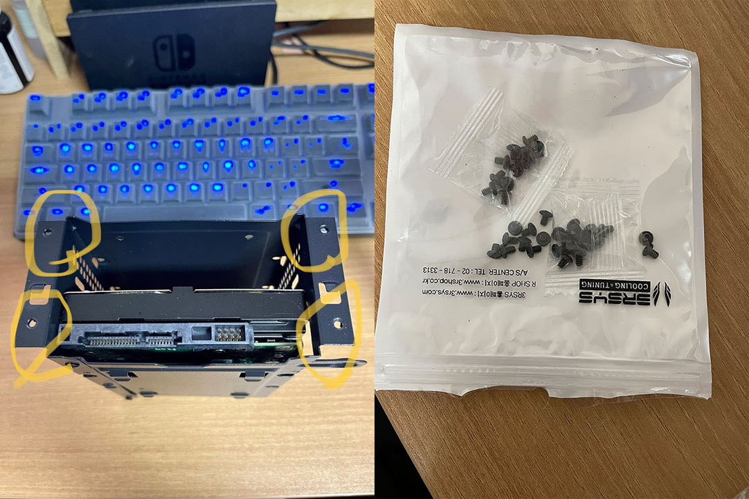 스토리지 파트를 케이스에 고정하는 부위는 나사가 전혀 조여 지지 않습니다