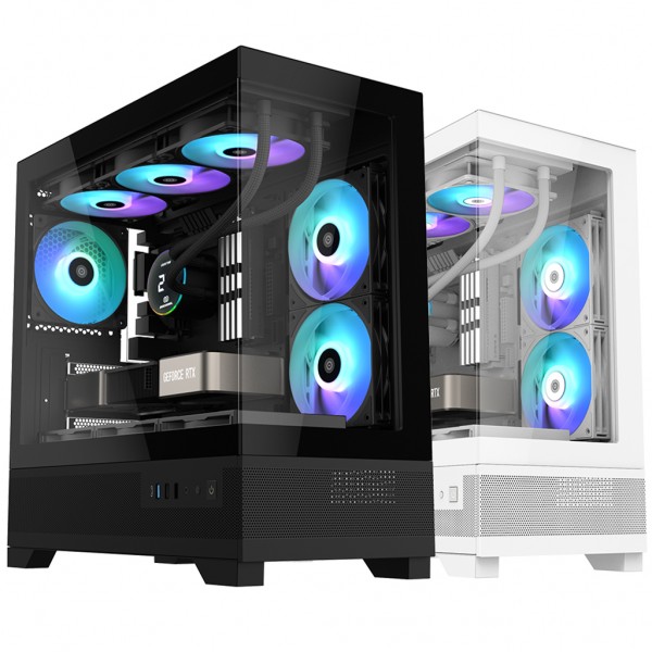 PC케이스(M-ATX) / 미니타워 / 파워미포함 / Micro-ATX / Mini-ITX / 쿨링팬: 총3개 / LED팬: 3개 / 측면: 강화유리 / 후면: 120mm LED x1 / 전면: 140mm LED x2 / 너비(W): 200mm / 깊이(D): 369mm / 높이(H): 426mm / 파워 장착: 180mm / 파워 위치: 하단후면 / GPU 장착: 320mm / CPU쿨러 장착: 158mm / LED 색상: 화이트
